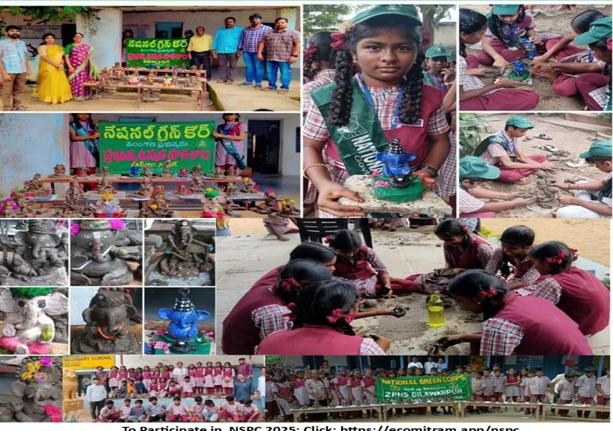 Under the banner Chitti Chetulatho Matti Ganapathi Prathimalu, the National Green Corps in Telangana promoted Eco-friendly Ganesh Chaturthi. Through quick clay idol-making workshops, students learned sustainability values—water conservation, tree plantation, biodiversity, and food chain pr...  Read More